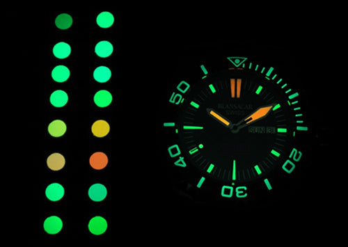 ‘Super-LumiNova’ is a brand name under which strontium aluminate based non-radioactive and non-toxic photoluminescent or afterglow pigments for illuminating markings on watch dials, hands and bezels, etc. in the dark are marketed. This technology offers up to 10 times better brightness than previous zinc sulphide based materials.